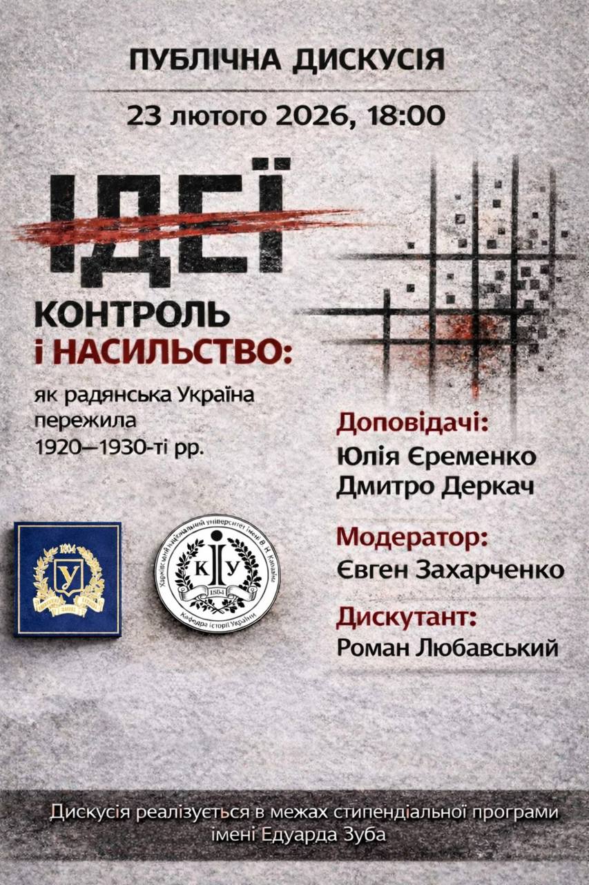 23 лютого 2026 р. о 18:00 в змішаному форматі відбудеться публічна дискусія «Ідеї, контроль і насильство: як радянська Україна пережила 1920–1930-ті рр.».