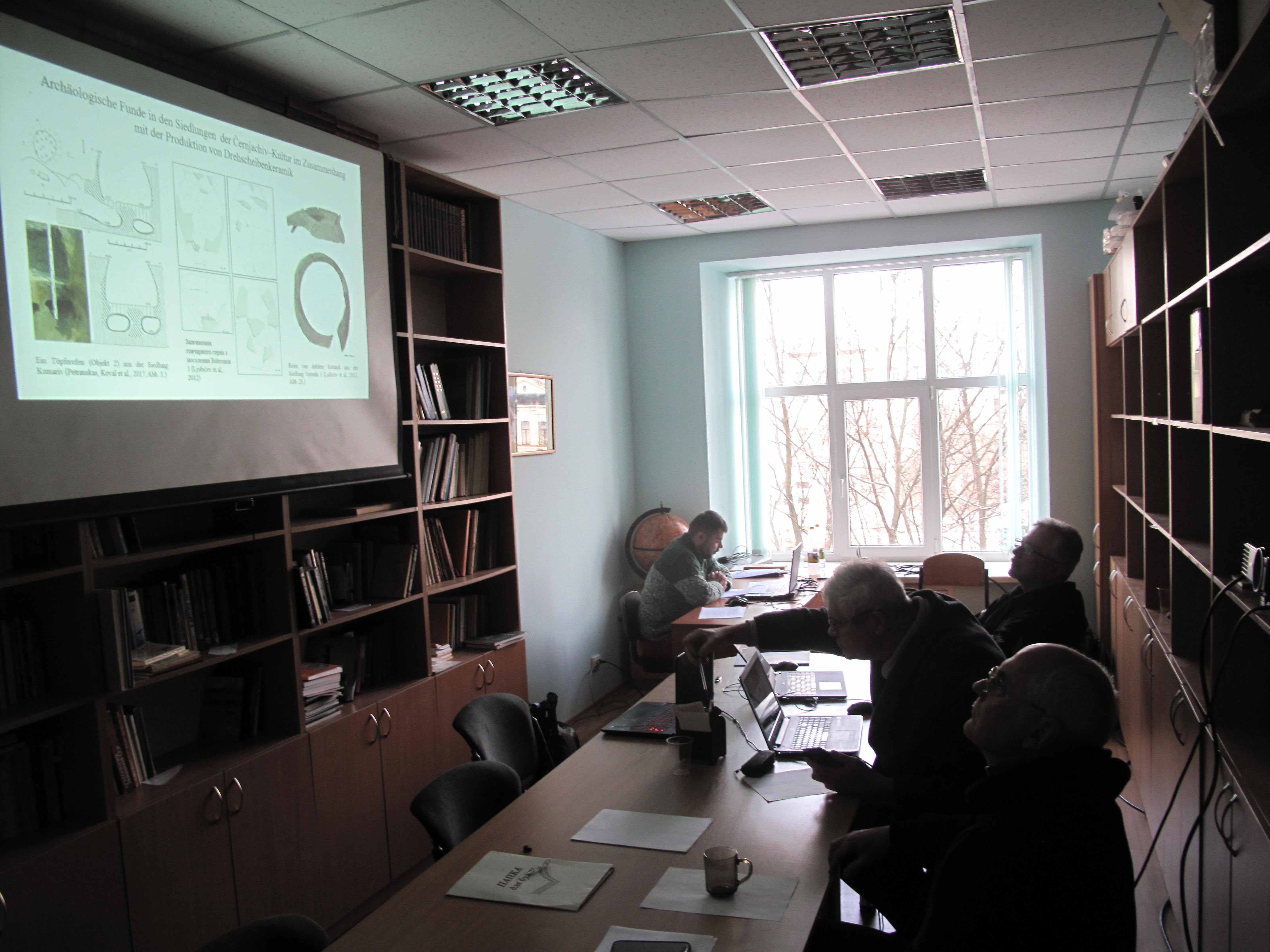 Засідання семінару 23 лютого 2026 року відбувалося у гібридному форматі. Ще одним приємним подарунком став візит київських колег канд. іст. наук, завідувача Відділом археології ранніх слов’ян Інституту археології НАН України О. В. Петраускаса та канд. іст. наук, завідувача сектором «Археологія доби раннього заліза» Національного музею історії України С. В. Діденко, які особисто взяли участь у його засіданні. Учасників семінару тепло привітав декан історичного факультету, канд. іст. наук, доцент С. С. Кушнарьов. Серія доповідей почалася з виступу канд. іст. наук, доцентки Львівського національного університету імені Івана Франка Н. Я. Стеблій «Українська археологія пізньоримської та ранньосередньовічної доби проблеми дослідження культурних процесів і виклики історичної реконструкції».