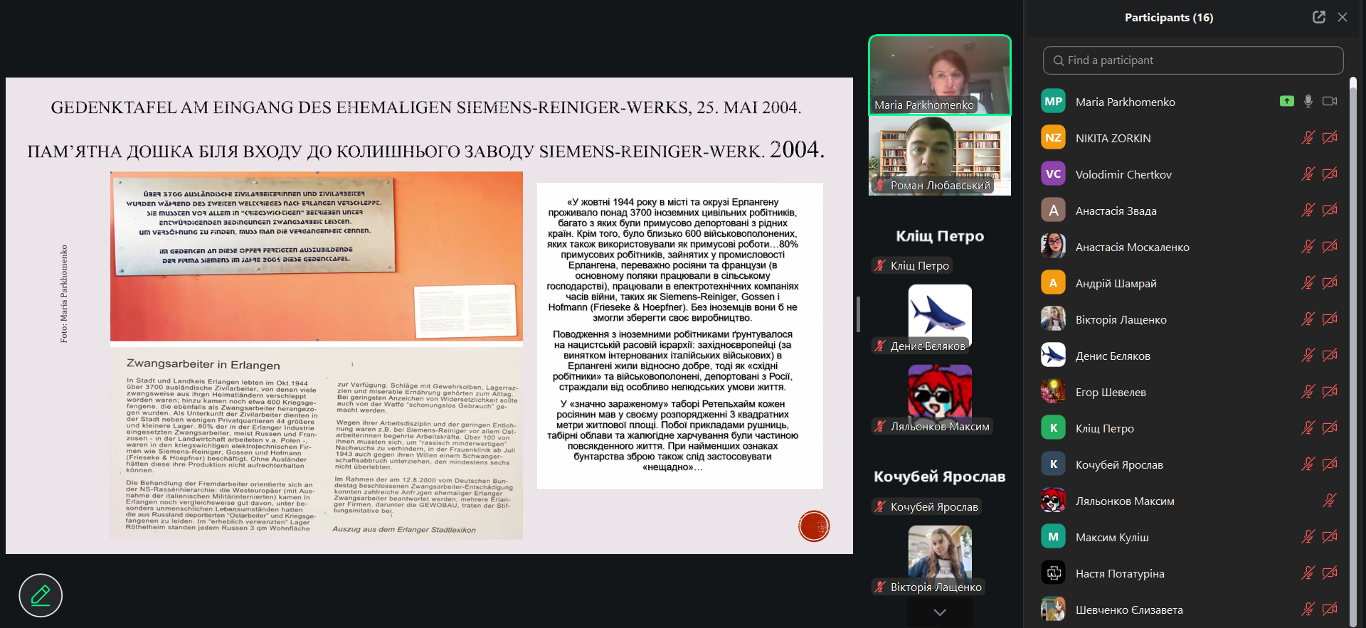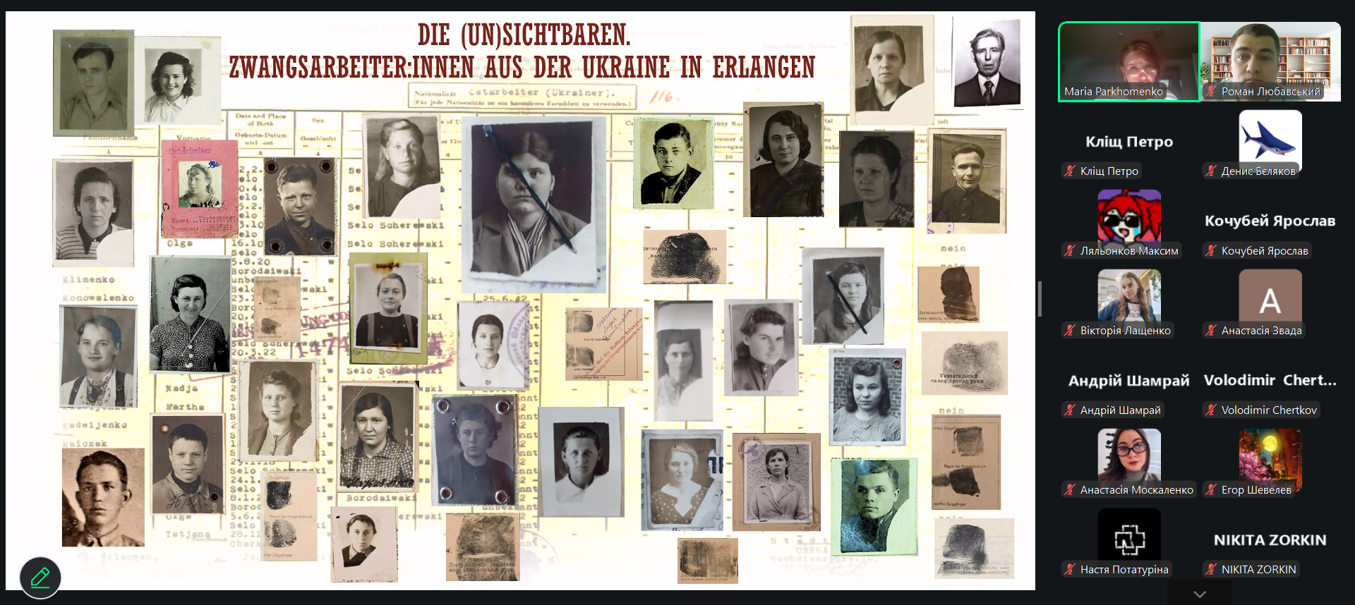 Під час лекції також було представлено дослідницький та виставковий проєкт «NS-Zwangsarbeiter:innen aus der Ukraine in Franken / Нацистські примусові робітники з України у Франконії», започаткований у 2022 році. Проєкт поєднує архівні дослідження, цифрові бази даних та роботу з персональними історіями людей, вивезених до Німеччини на примусові роботи.